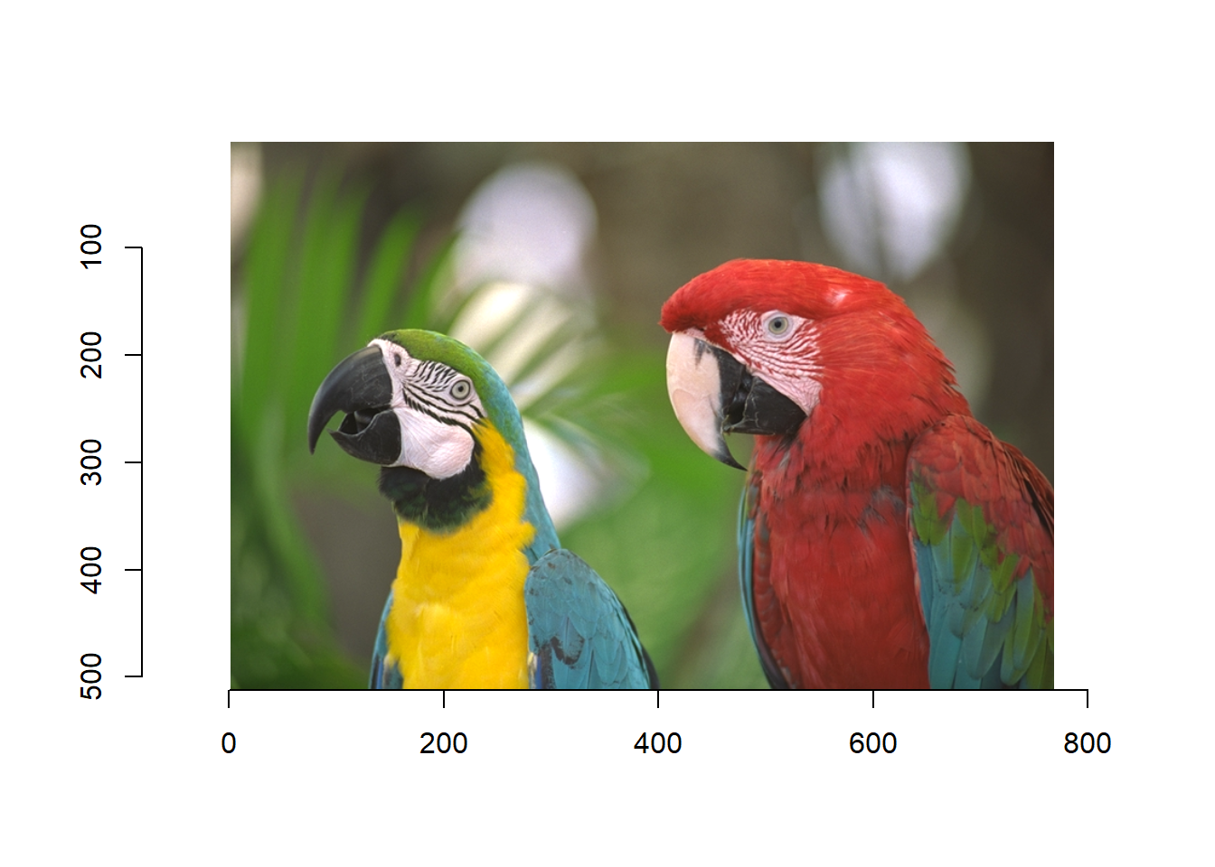 今回はオウムのサンプル画像を読み込み、それを表示させる。 表示は通常のplot()でOK。