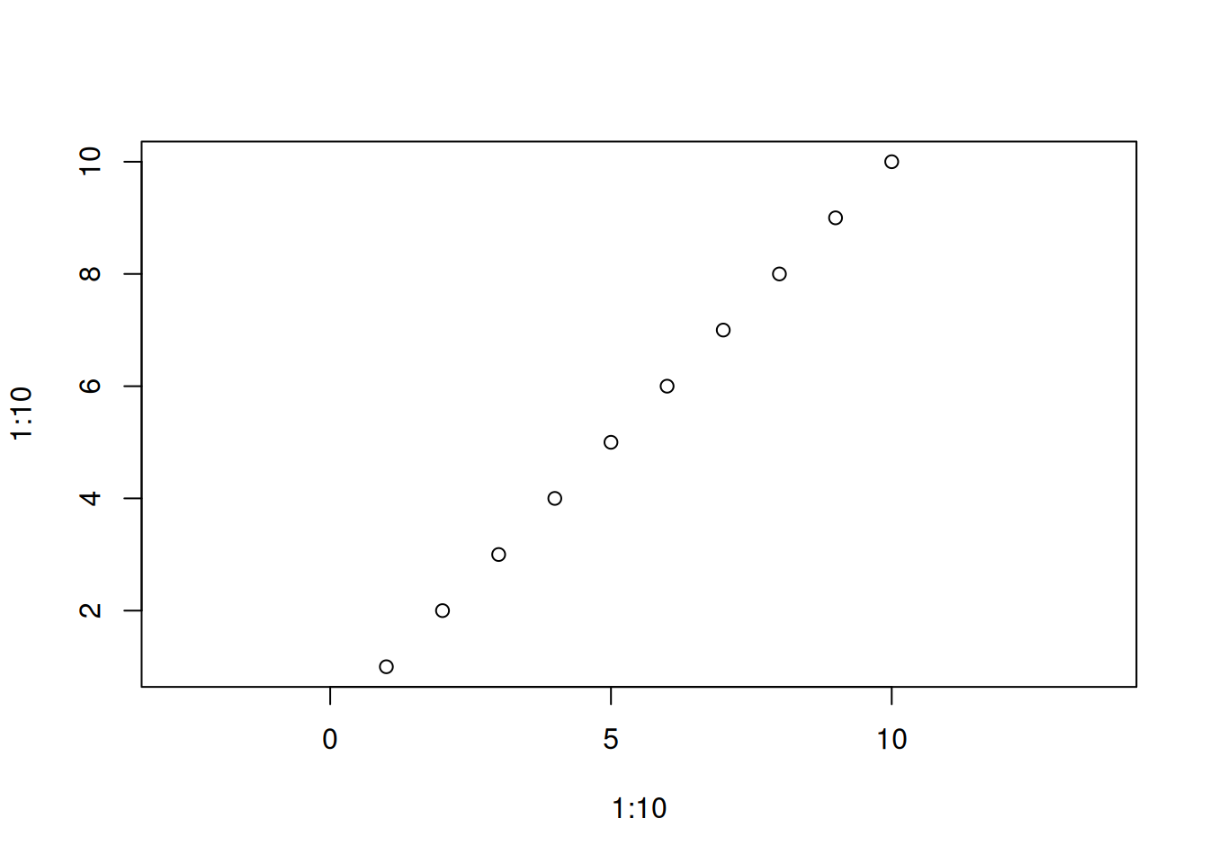 plot(1:10, 1:10) # デフォルトのアスペクト比