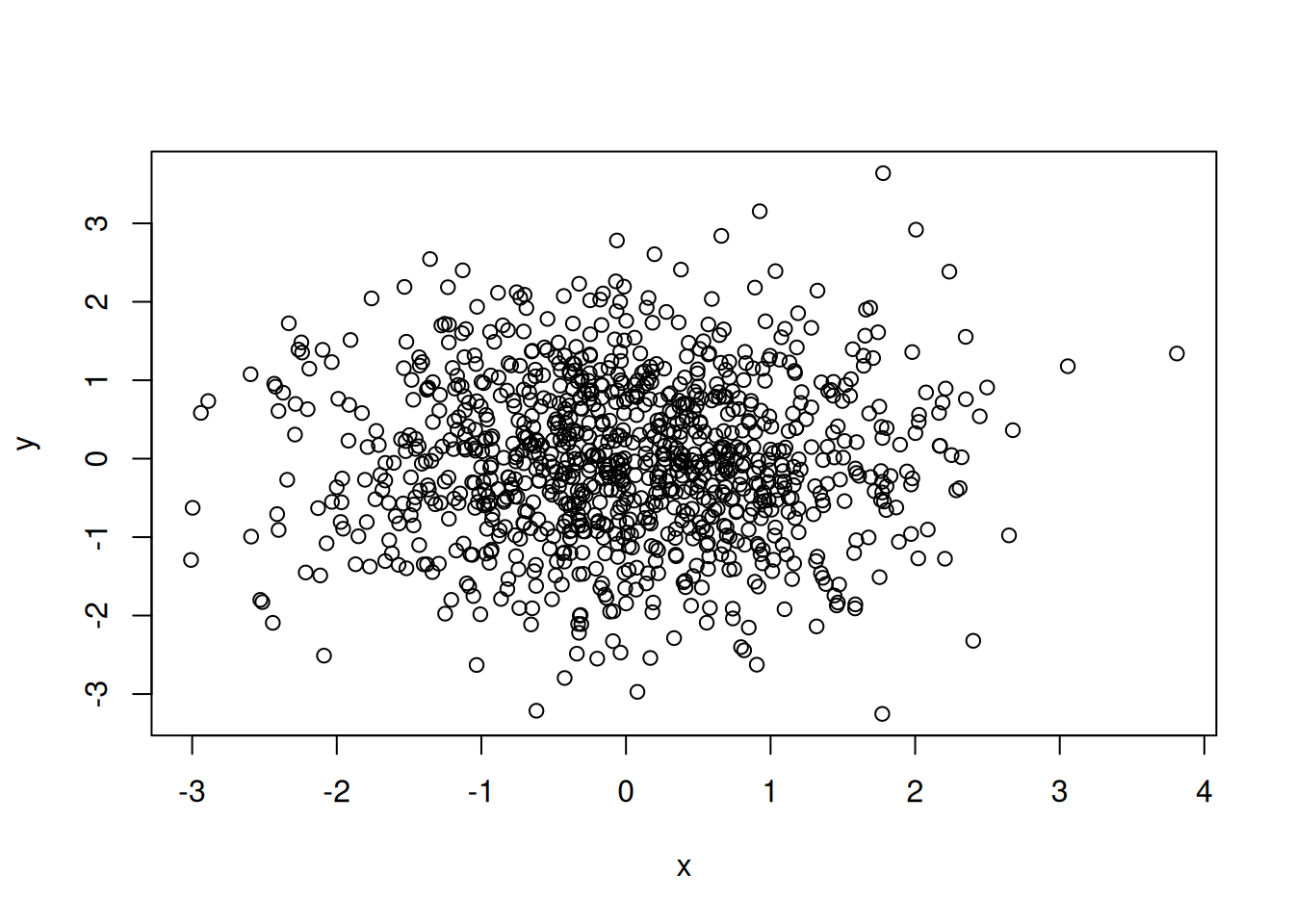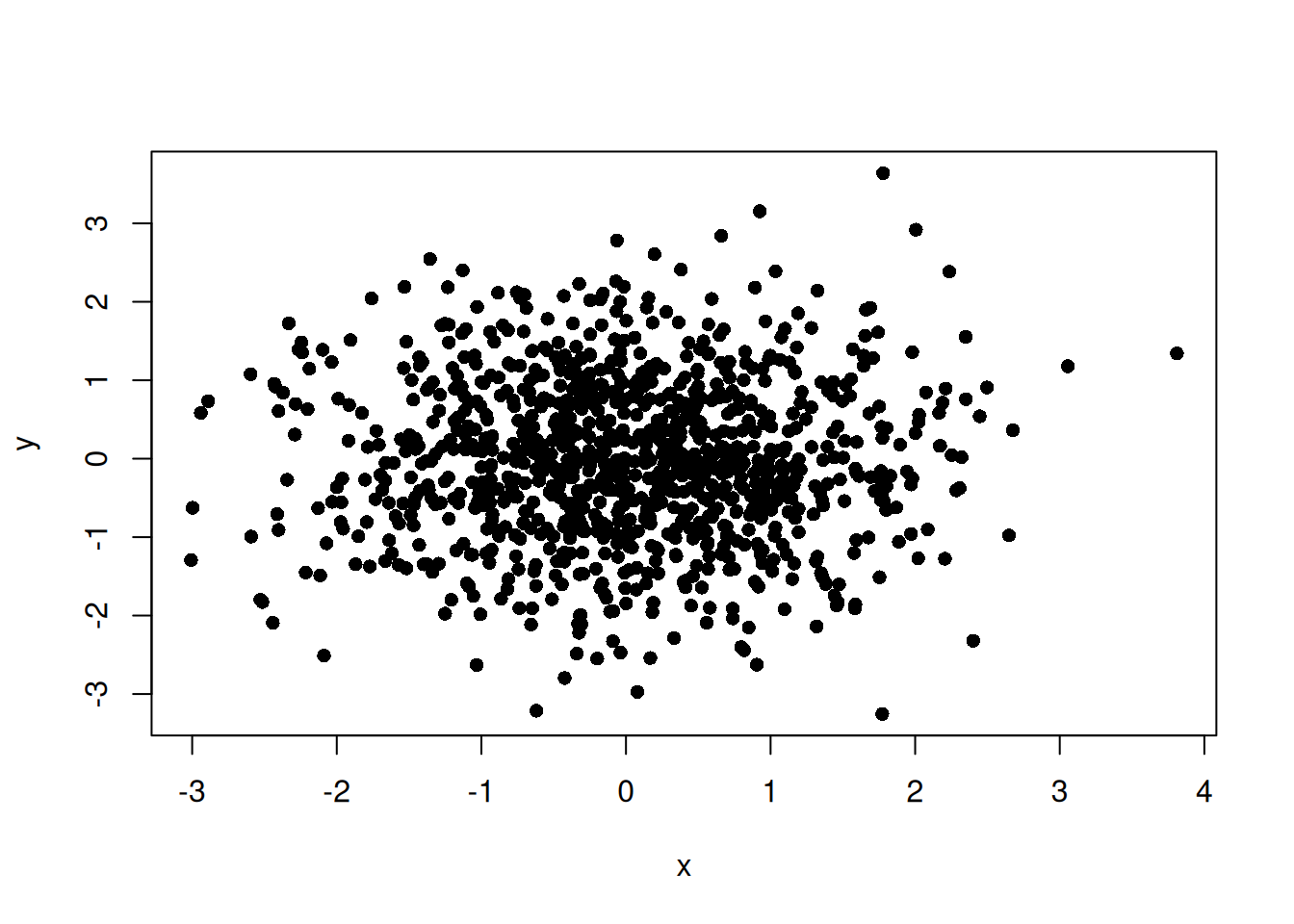 plot(x, y, pch = 16)