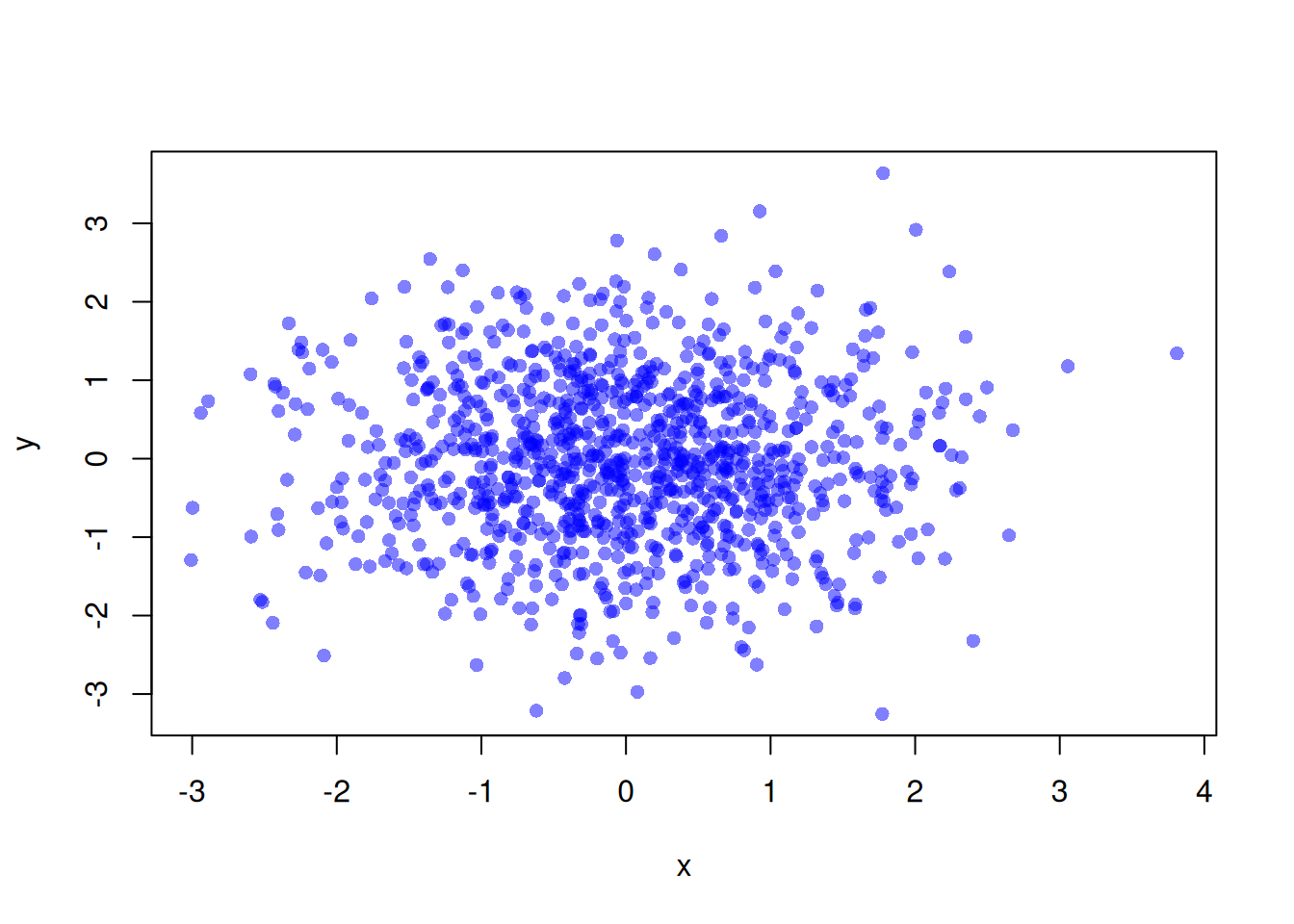 plot(x, y, pch = 16, col = "#0000FF80")