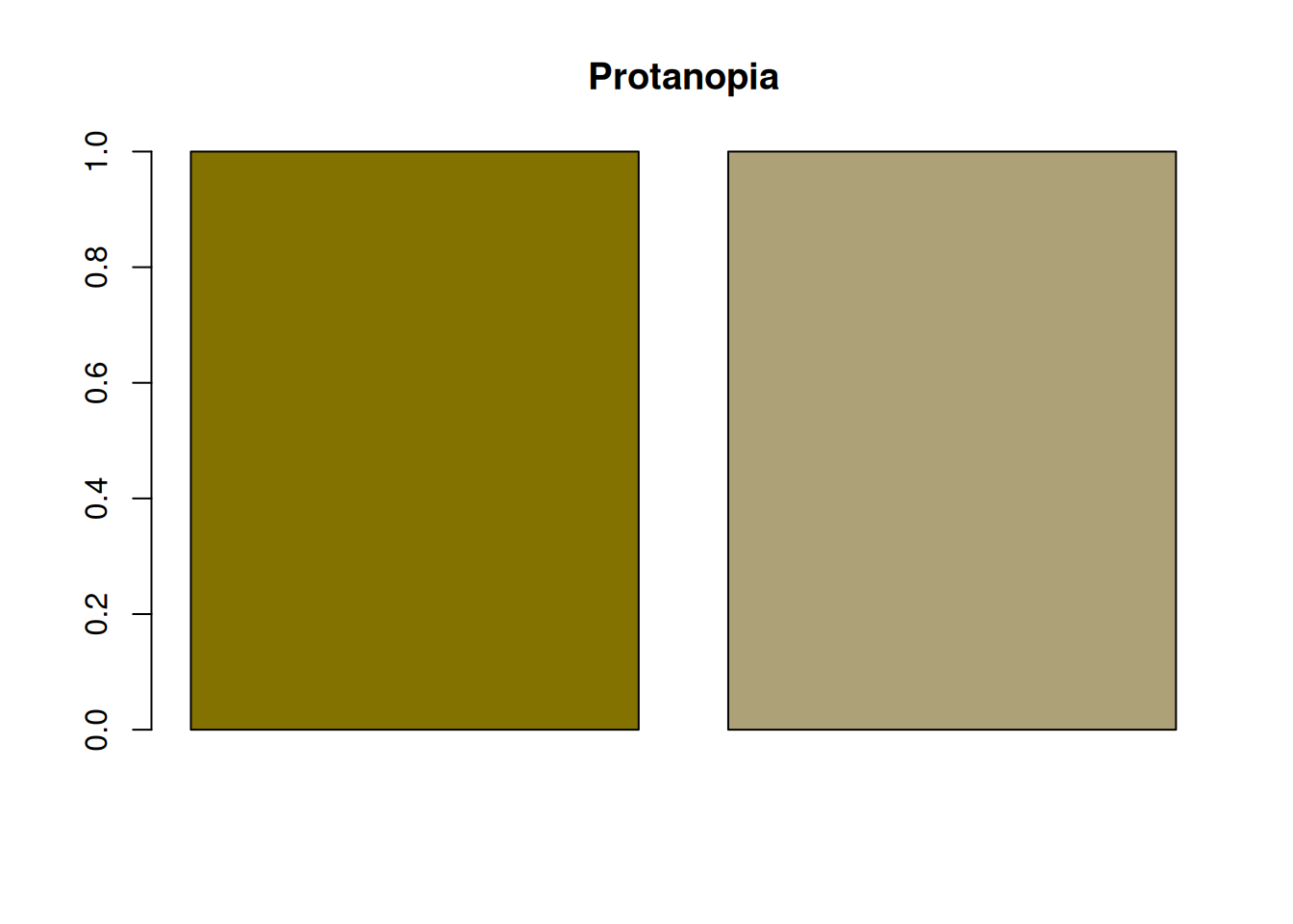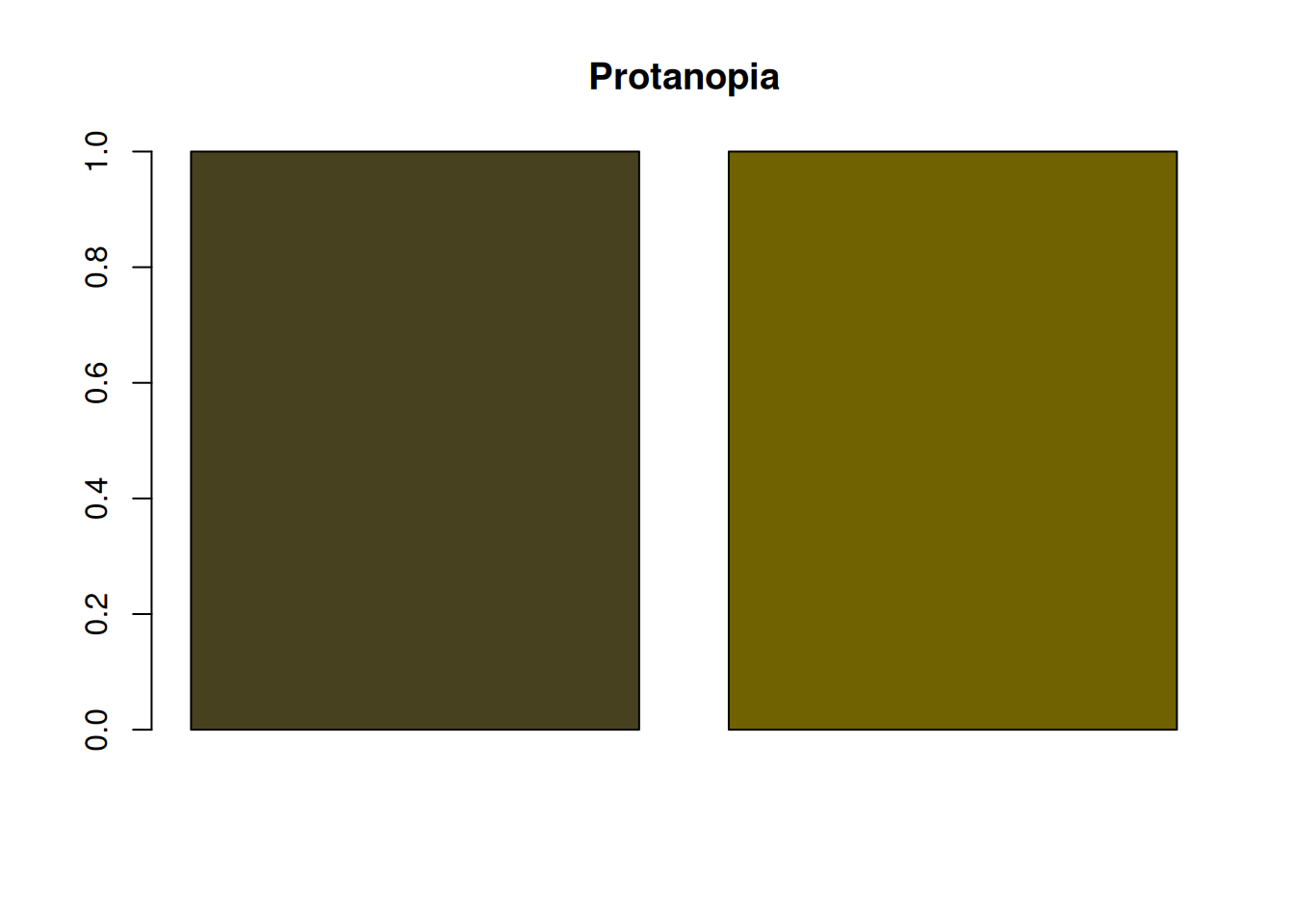 barplot(rep(1, length(colors_protan)), col = colors_protan, main = "Protanopia")
