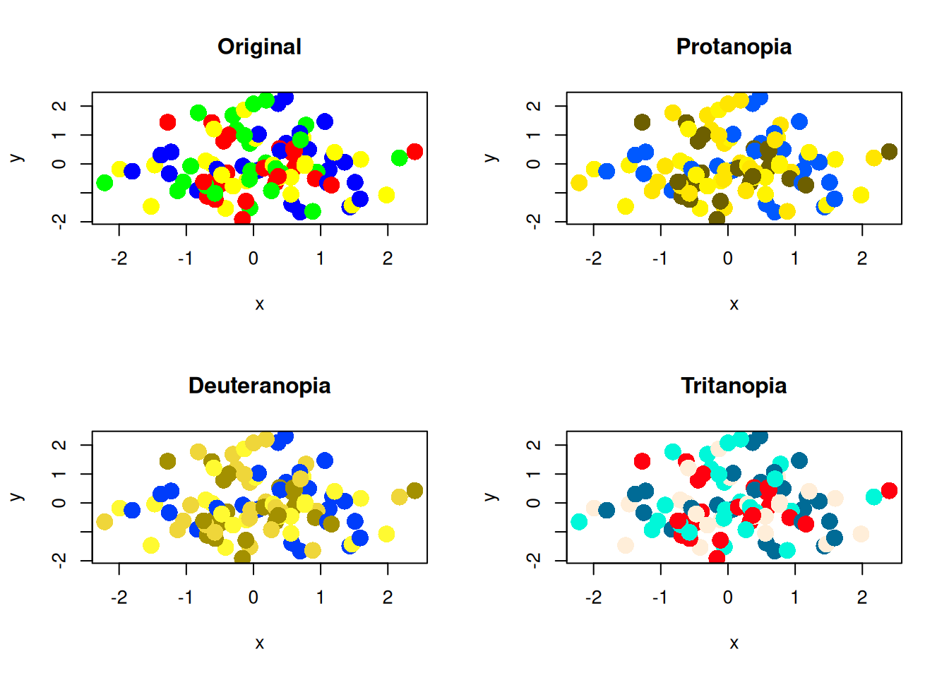 plot(x, y, col = colors_okabe_ito, pch = 16, cex = 2, main = "Original")