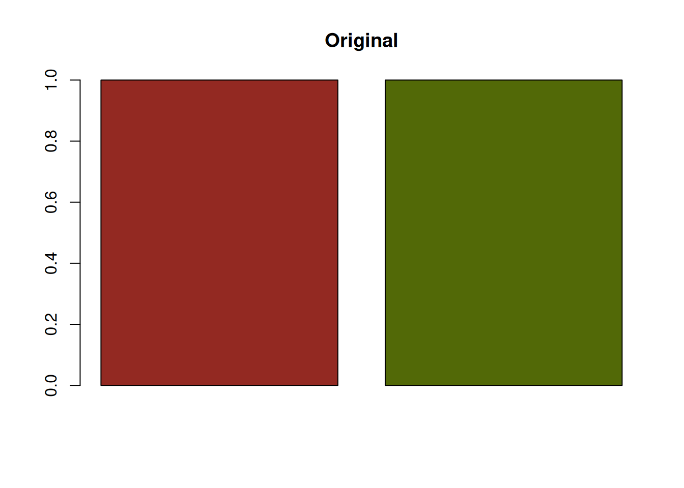 barplot(rep(1, length(colors)), col = colors, main = "Original")